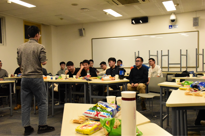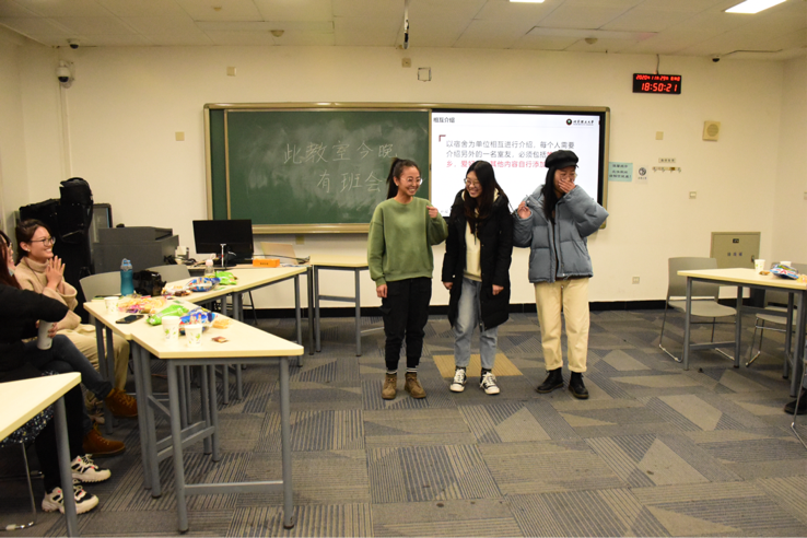 随后,黄浩然组织大家进行一些小游戏来增进大家之间的交流,缩短同学之间的距离感。经过猜物游戏、击鼓传花和不要说挑战之后,同学之间的交流变得更加放松和密切。在班会的最后,由班委端出刻有班里每个同学名字、寓意2020级硕士一班是一个完整美好的大家庭的蛋糕,并切分给了每一个同学。