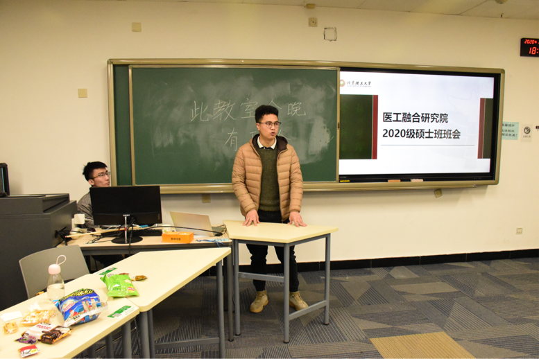 为了增进班级同学友谊,增强班级的凝聚力,医工融合研究院2020级硕士一班的同学们于11月29日晚18:30在中关村校区研教1006举办了开学第一次班会。本次班会促进了同学们之间的沟通交流,增进了同学们之间的友谊。