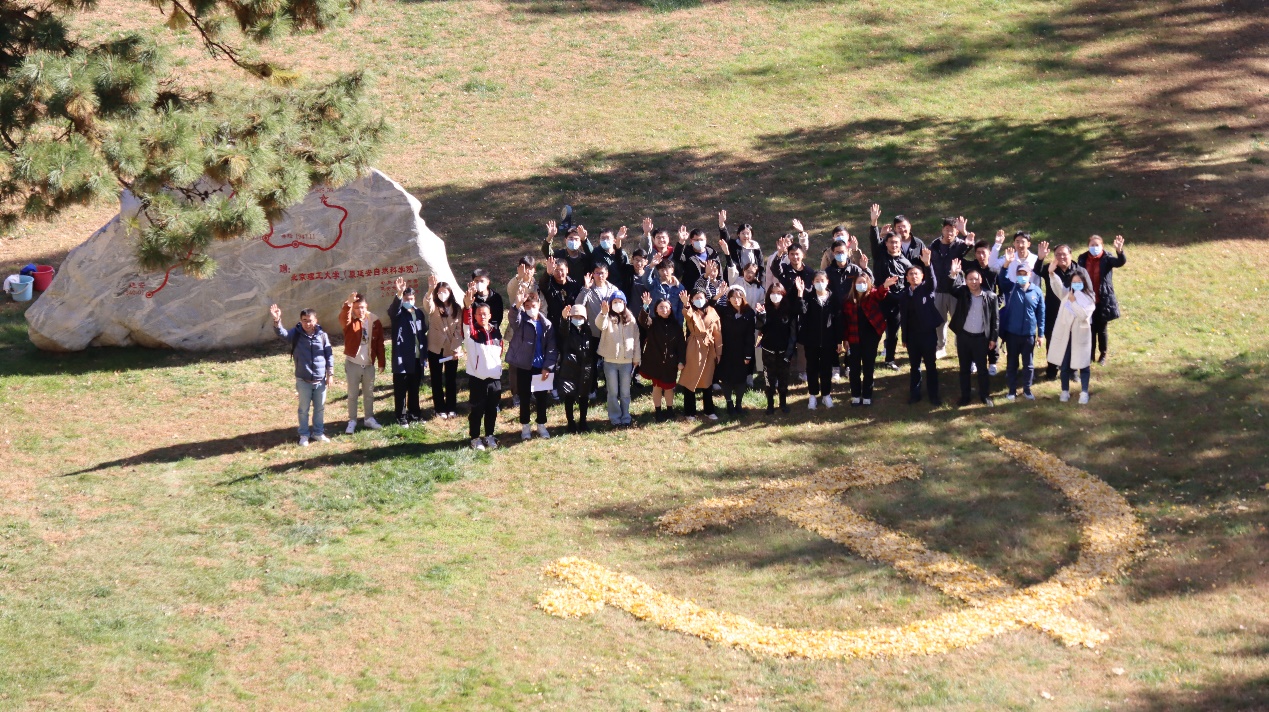 近期,党的二十大胜利召开,师生党支部正在组织学习贯彻党的二十大精神。活动最后,师生党员们在美丽的中心花园,将劳动中收集的银杏树叶摆成党徽的形状,表达了对党的深深祝福。