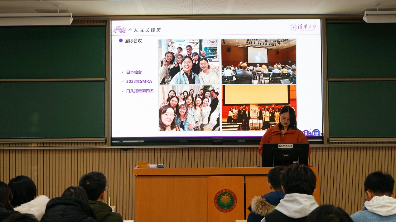 康宏宇校友讲述了自己在本科期间大学四年中每一年的具体规划,着重讲述了自己与本班同学们的深厚友情,希望每一位同学都能够过好自己的大学生活。康校友尤其讲到了目前学科交叉融合发展的现状,鼓励同学们要传承和发扬“延安精神”和“尊科学济人道”精神,树立理想,施展抱负。