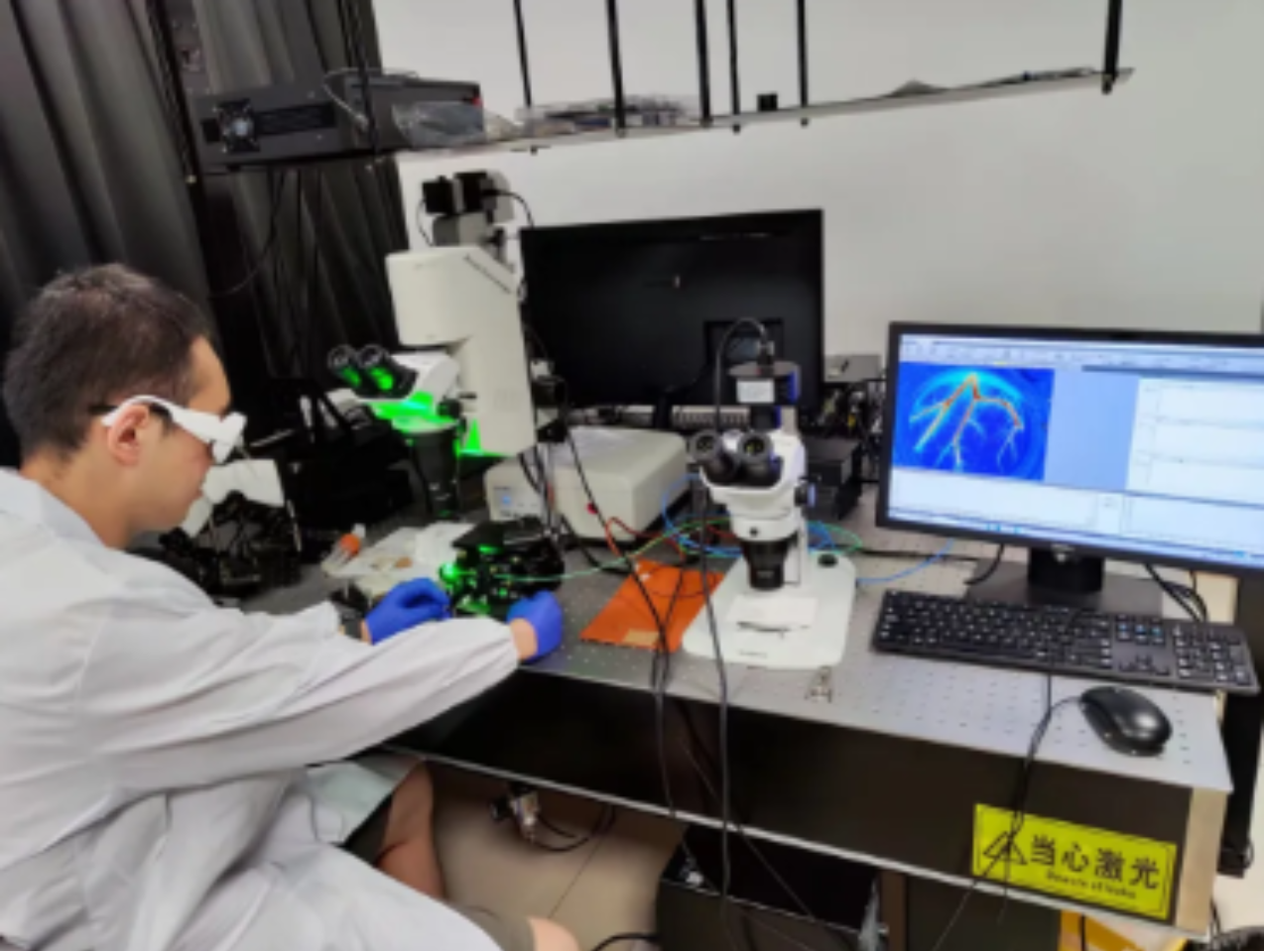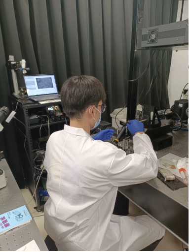 陈喆同学在图案化PC12细胞网络的钙离子成像观察